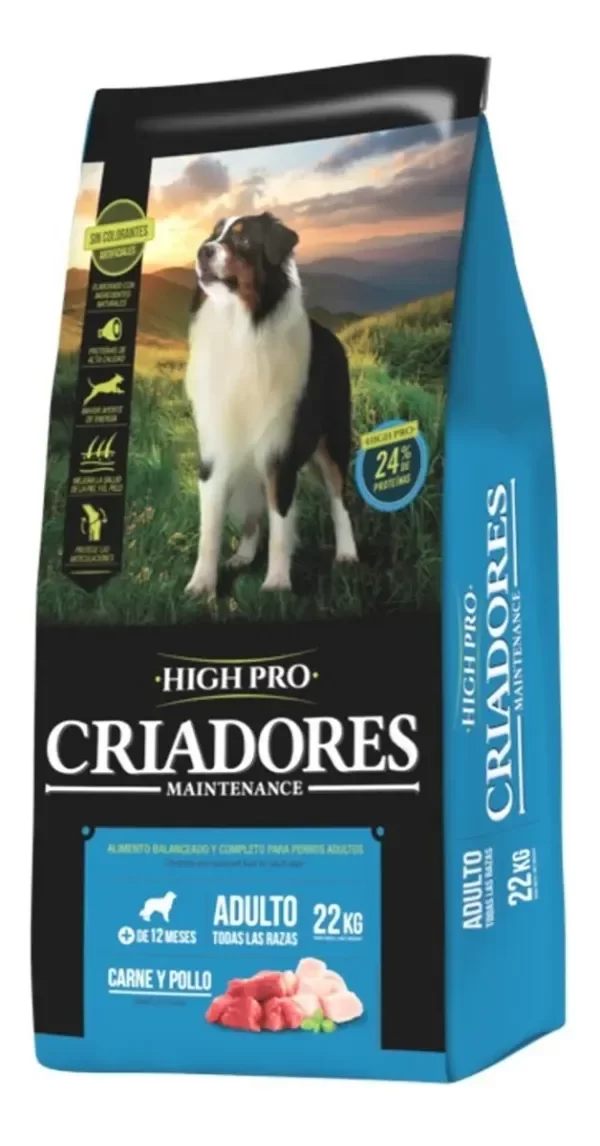 Dale a tu perro adulto la nutrición que necesita con el Alimento Maintenance Criadores High Pro sabor carne y pollo en bolsa de 22 kg. Este alimento seco de alta calidad, fabricado por Agroindustrias Baires, está especialmente formulado para satisfacer las necesidades de tu mascota en su etapa adulta. Con un 23% de proteína bruta, este alimento proporciona la energía y fuerza que tu perro necesita para mantenerse activo y saludable. Además, su delicioso sabor a carne y pollo hará que tu mascota disfrute cada bocado. Los ingredientes como la harina de subproductos de pollo, arveja, trigo y maíz, aportan nutrientes esenciales para el bienestar de tu perro, como un 12% de humedad, 4% de fibra cruda, 8% de minerales totales, 1.5% de calcio y 1.1% de fósforo. La bolsa de 22 kg es perfecta para garantizar que tu perro tenga suficiente alimento durante un largo período de tiempo, y su práctico envase tipo bolsa facilita su almacenamiento y conservación. No esperes más para ofrecerle a tu perro adulto el alimento Maintenance Criadores High Pro, una opción nutritiva y deliciosa que contribuirá a su salud y felicidad.